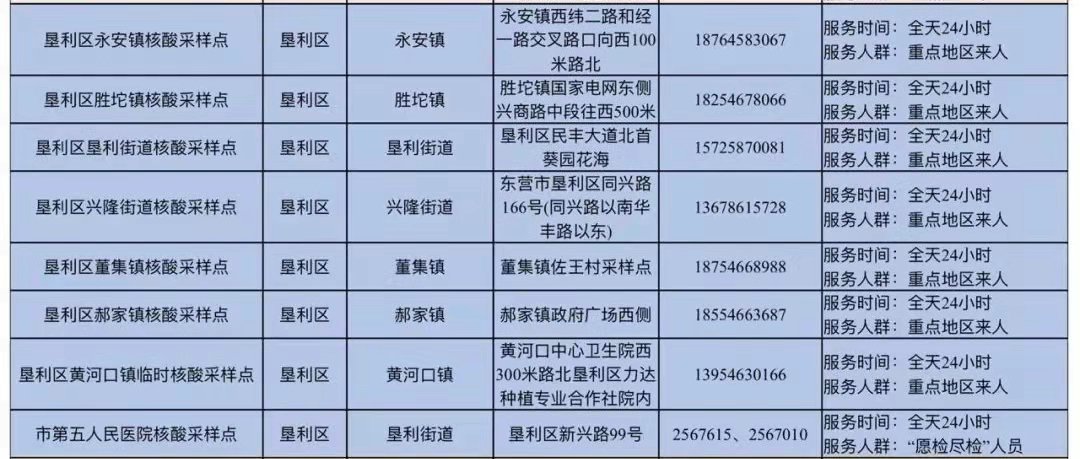 东营垦利区免费核酸采样点汇总: