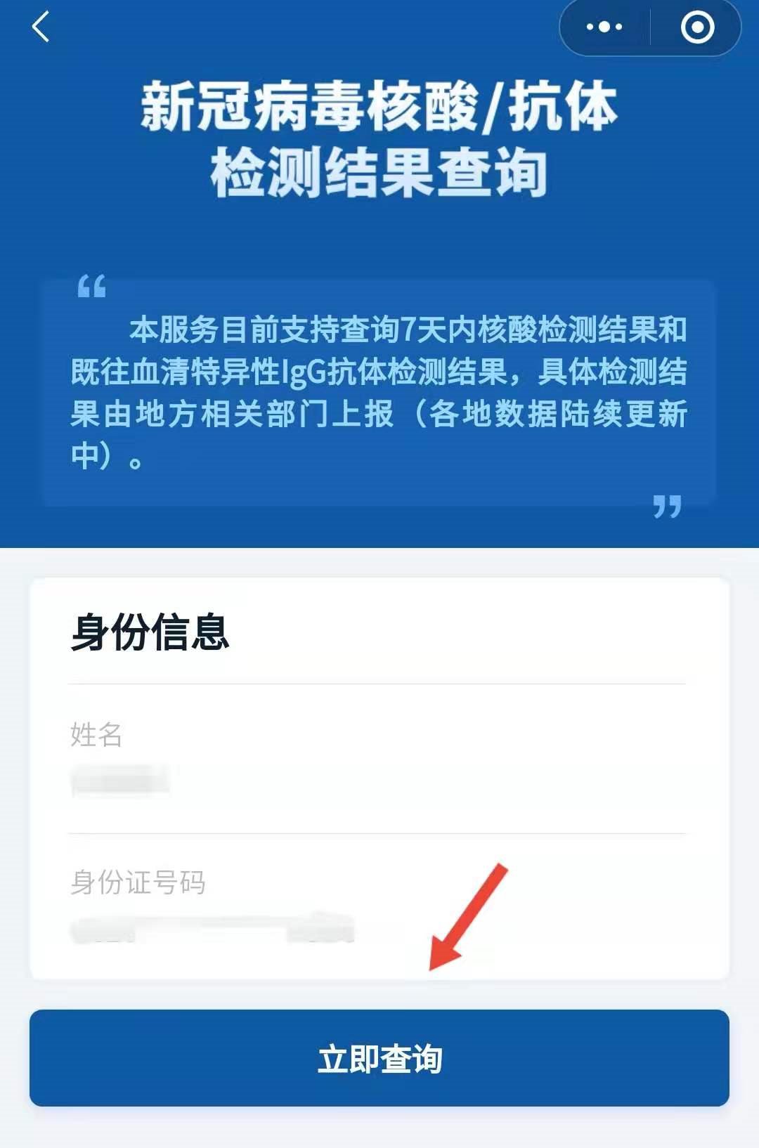 第二步:填写身份信息,点击立即查询