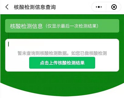 如果该页面展示您的核酸检测信息不准确,或者您曾经做过核酸检测但未显示出来,您也可自行将纸质版的核酸检查报告单拍照上传。值得注意的是:如您选择自行上传,需保证上传核酸检测报告真实性,并承担一切法律效果。