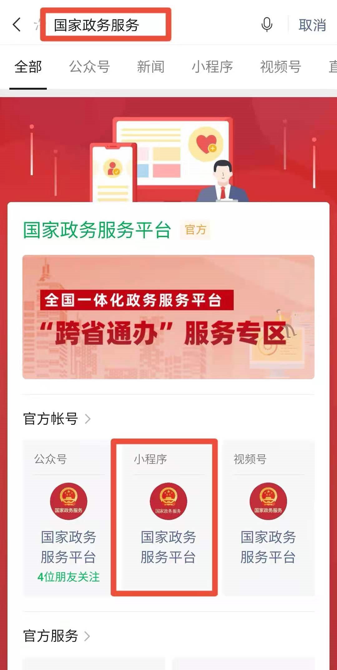方式三、国家政务服务平台”小程序查询