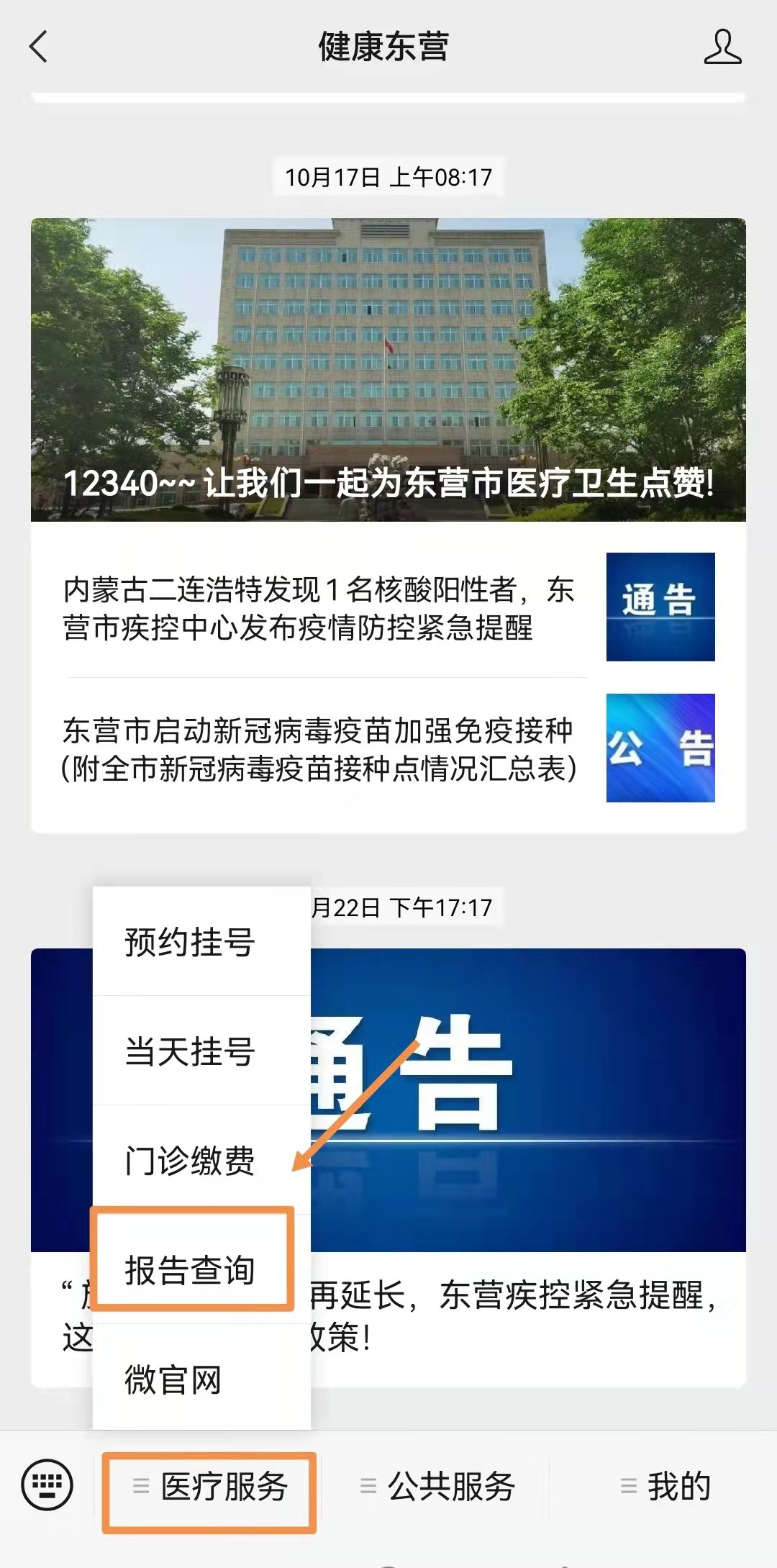 方式一:健康东营微信公众号