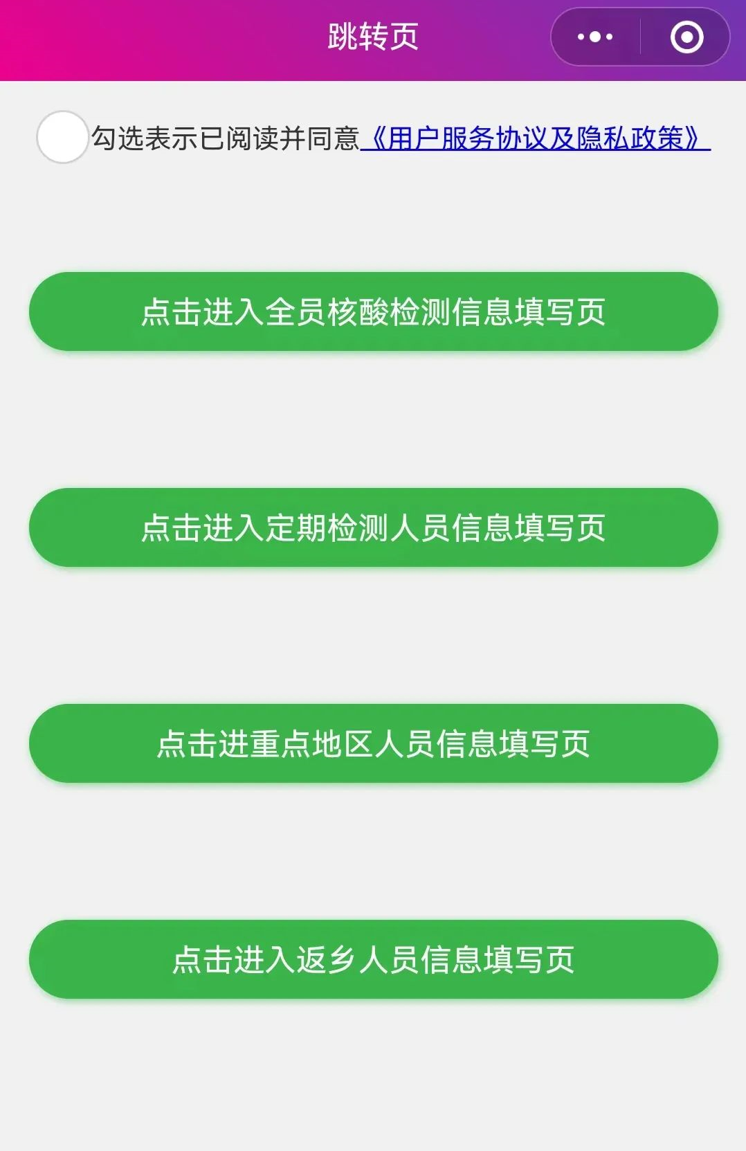 2.勾选同意后并点击进入全员核酸监测信息填写页面。
