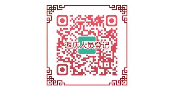二、所有抵返庆人员,抵返我市前均需提前2-3天,使用手机扫描“返庆人员登记”二维码(见下图),如实完整填写信息,并向居住地社区报备。