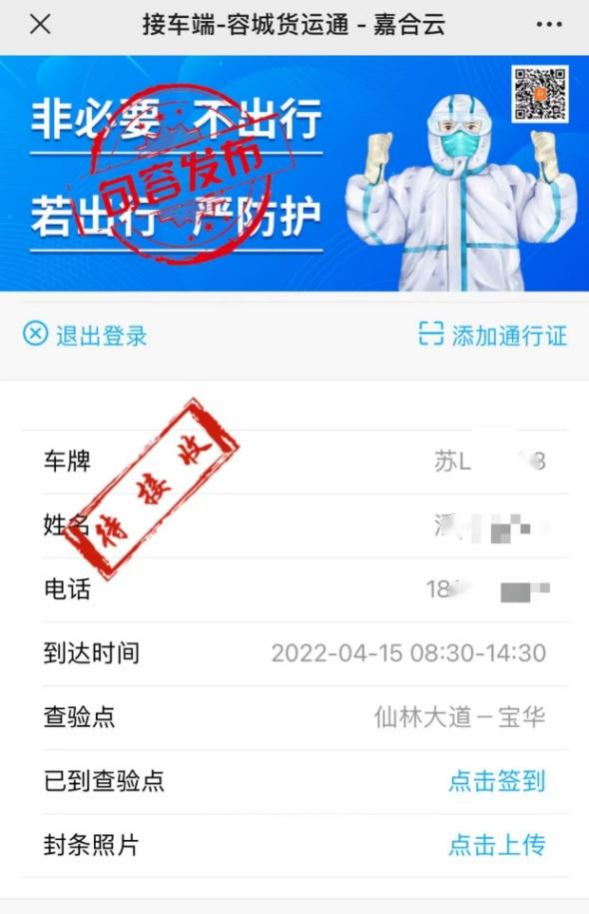 6.交通工作人员查验货车时,查验端将显示接车人签到信息,没有签到的,将劝返;如接车人签到后擅离未能及时接车,将列入“黑名单”,限发申报企业后续通行证。