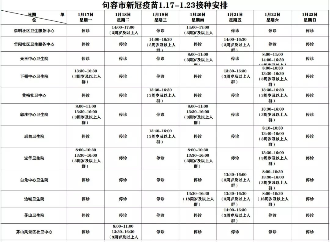 一周新冠疫苗接种安排(1月17日-1月23日)