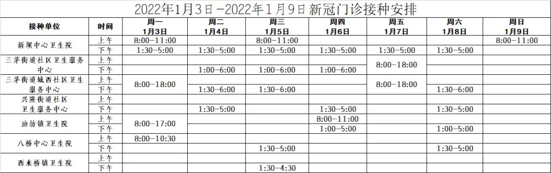 新冠疫苗接种安排(2022年1月3日-2022年1月9日)