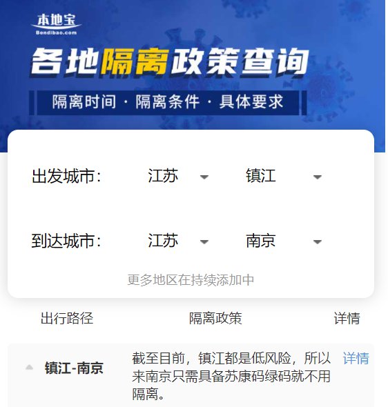 只要输入出发地以及目的地,即可看到目的地的相关隔离政策。