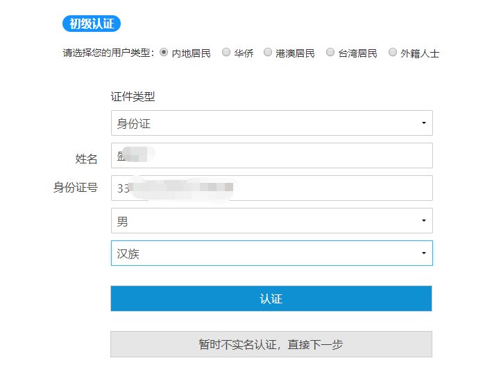 3、输入用户名、手机号码、密码等,完成初级认证,并完善个人信息。