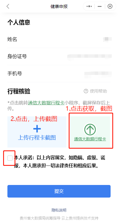 4.在“本人承诺”前打钩,最后点击“提交”