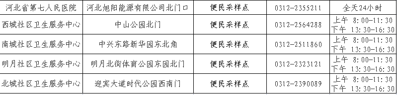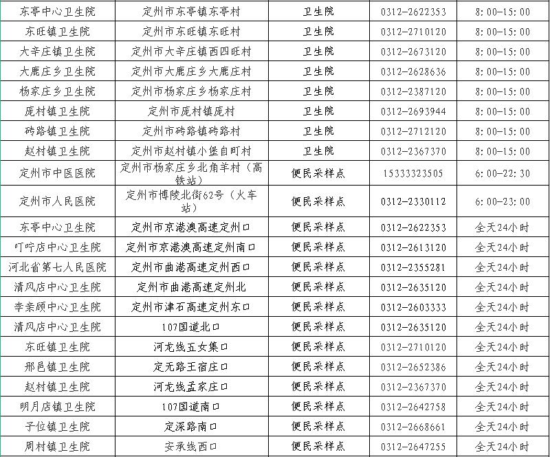 定州市核酸采样点信息公示