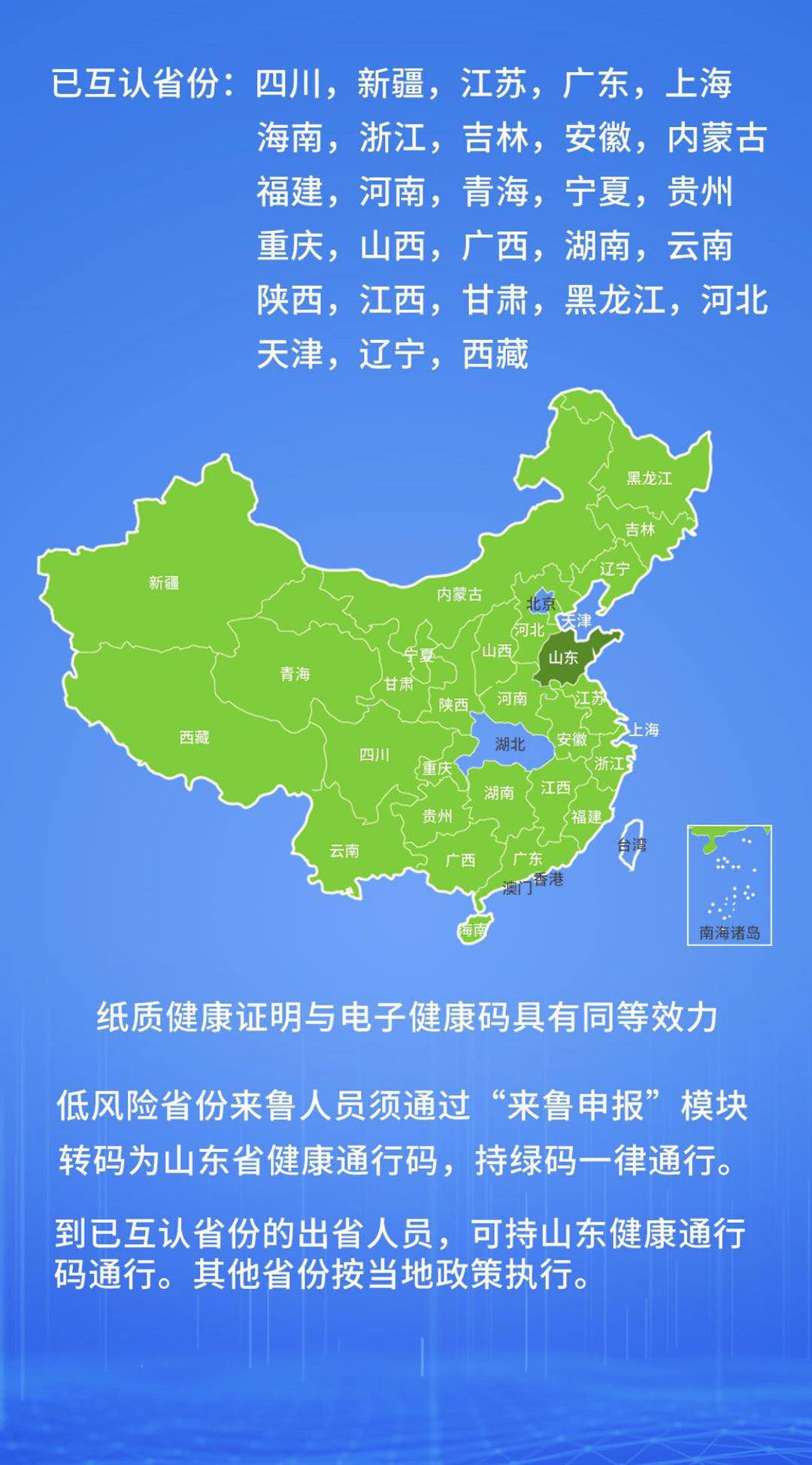 山东省健康通行码已与28省份实现互认,分别是四川、新疆、江苏、广东、上海、海南、浙江、吉林、安徽、内蒙古、福建、河南、青海、宁夏、贵州、重庆、山西、广西、湖南、云南、陕西、江西、甘肃、黑龙江、河北、天津、辽宁、西藏。 健康码互认的省份到潍坊持绿码就不需要隔离。
