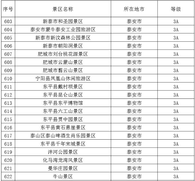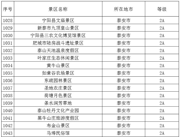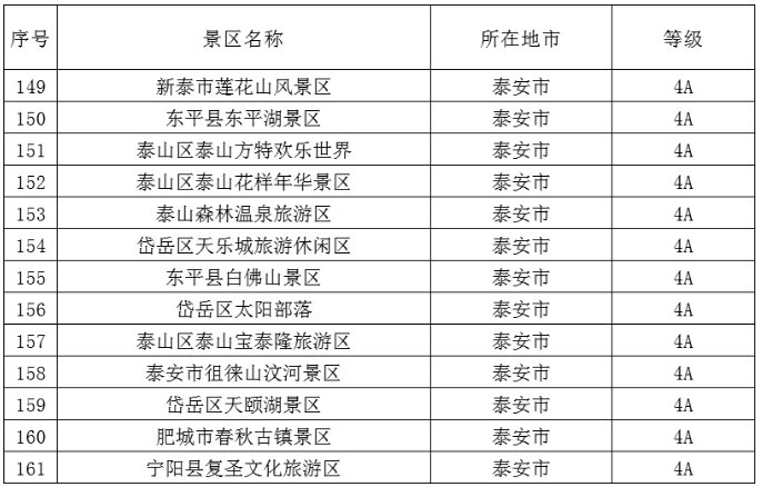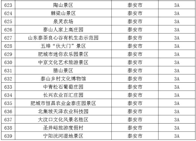 泰安市共有这些A级旅游景区