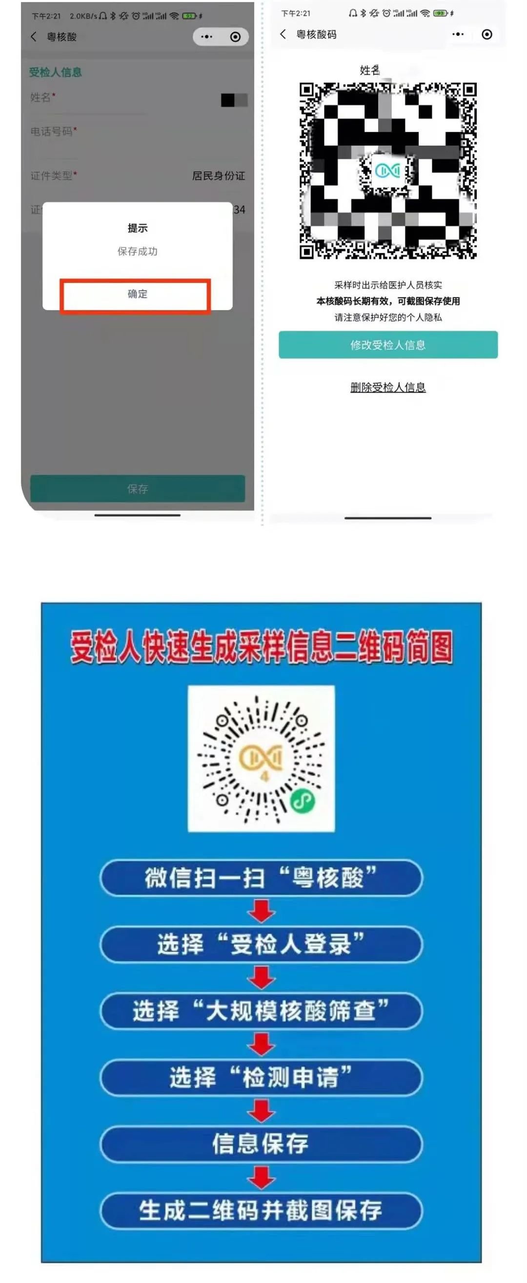 (四)请提前扫下方“粤核酸4葵花码”逐个登记家庭成员信息,并保存好登记成功的二维码截图。检测前,凭“葵花码+粤康码+行程卡”(可截图)进入检测点。粤康码显示黄码的群众,请移步至健身广场/金晖苑/海湾社区的黄码专区进行检测。接种新冠疫苗48小时内不能参与核酸检测。