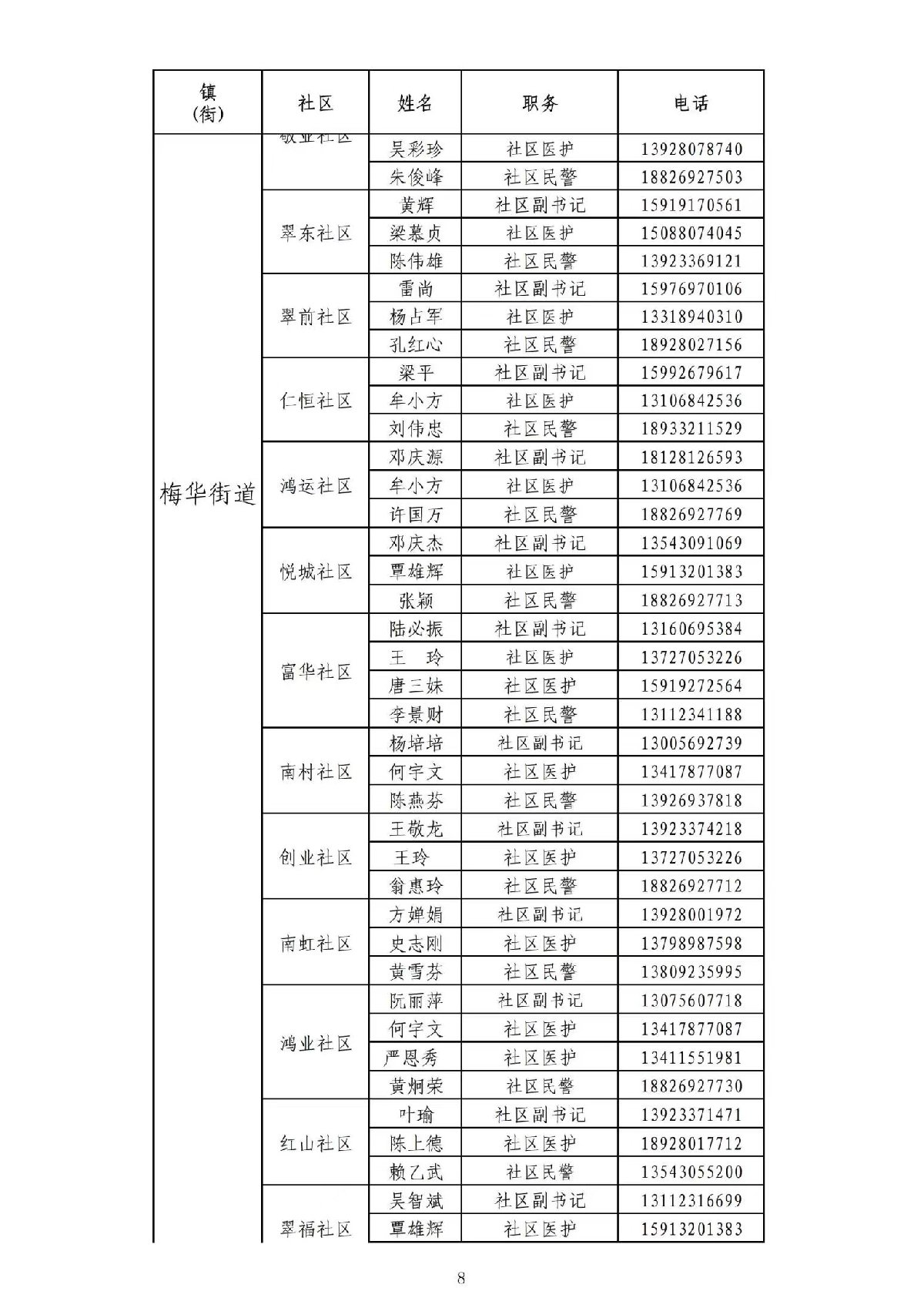 香洲区镇(街)各社区“三人小组”名单