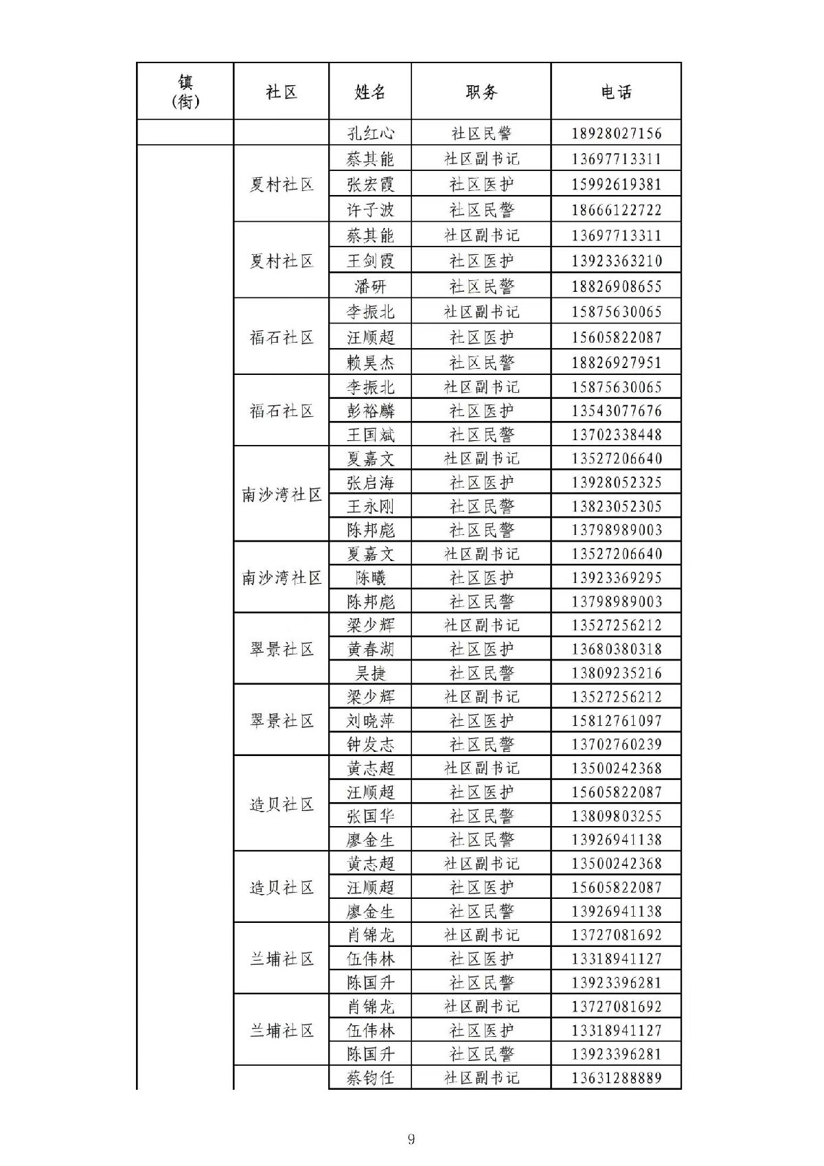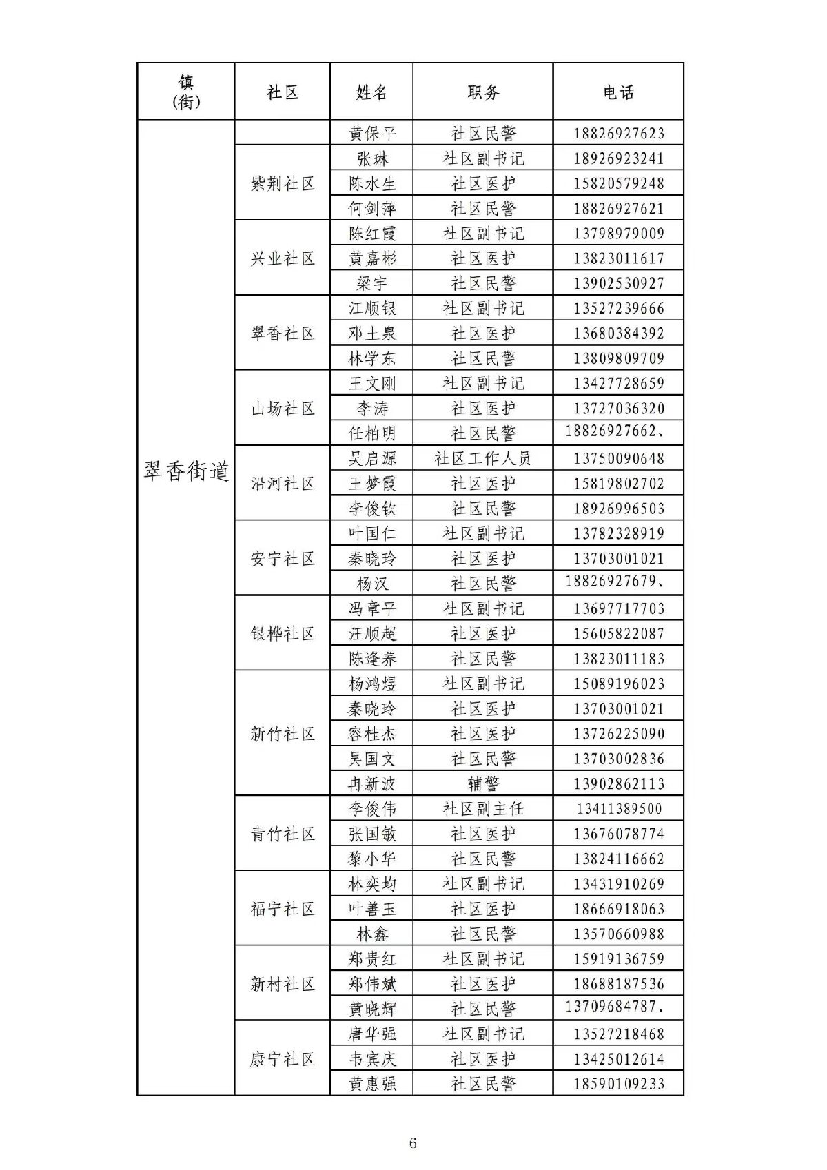 珠海香洲区各社区三人小组名单+联系方式