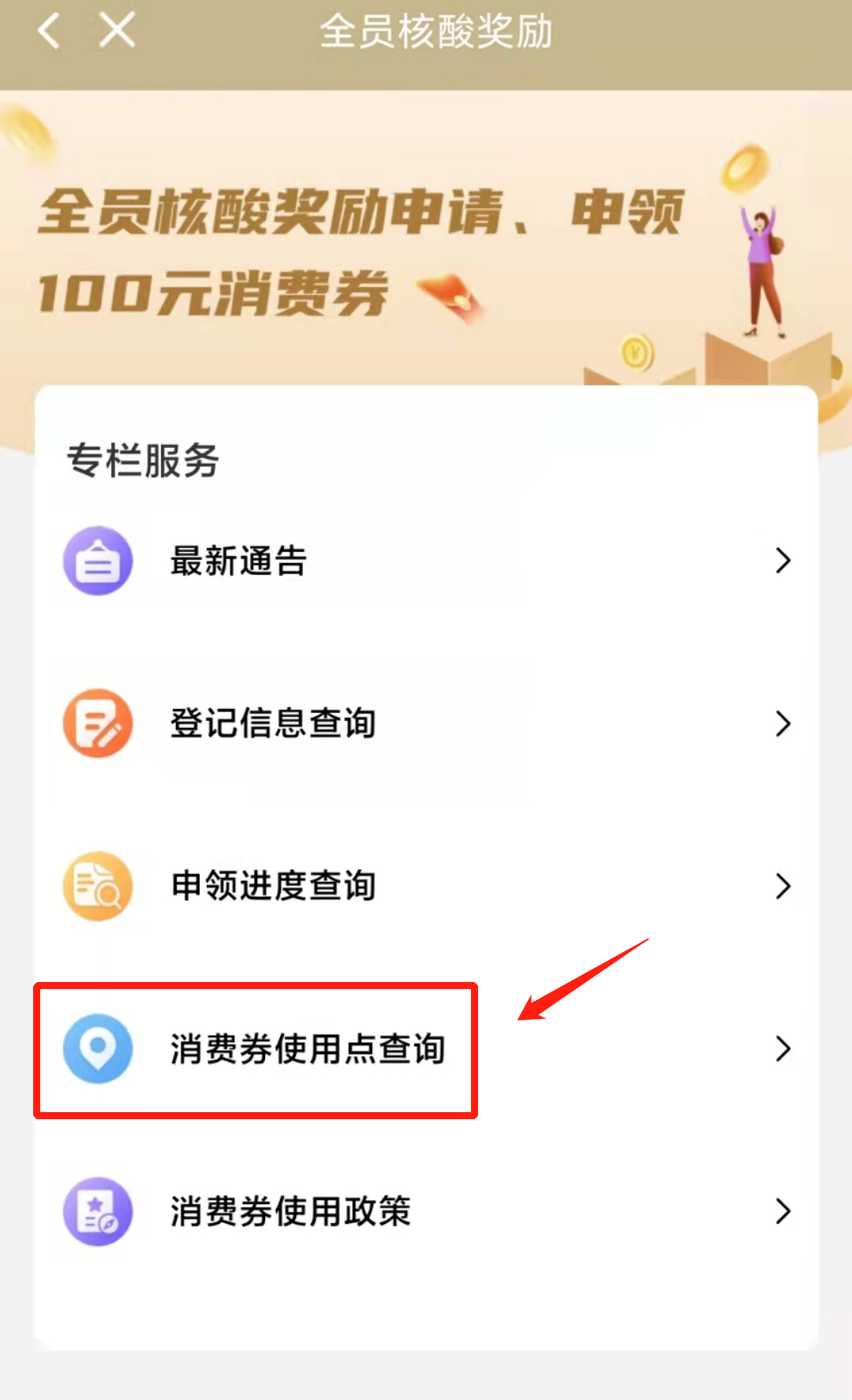 ②点击“消费券使用点查询”,即可查看该消费券可以使用的商家名单: