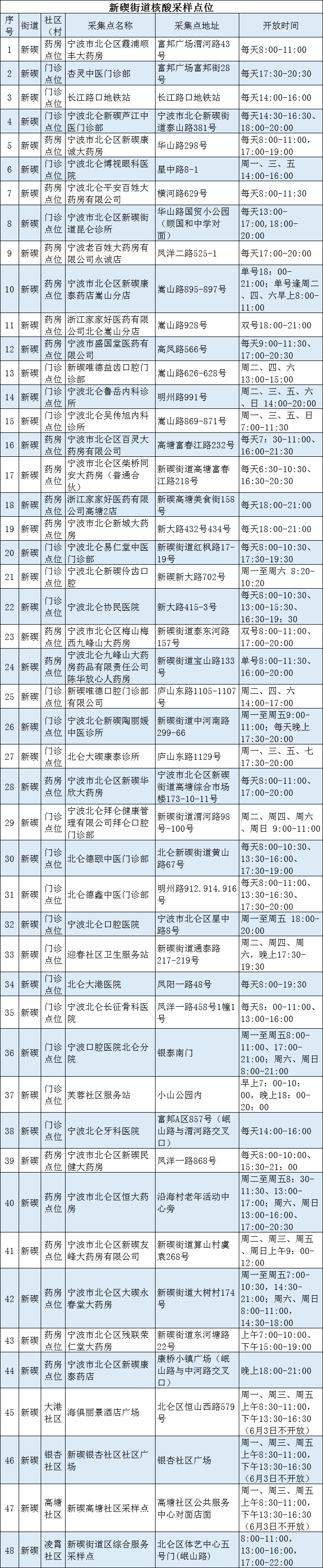 2022年北仑新碶街道核酸检测点汇总(地址+开放时间)