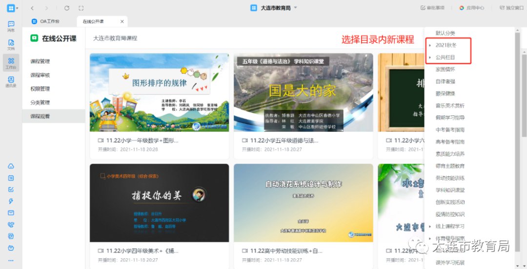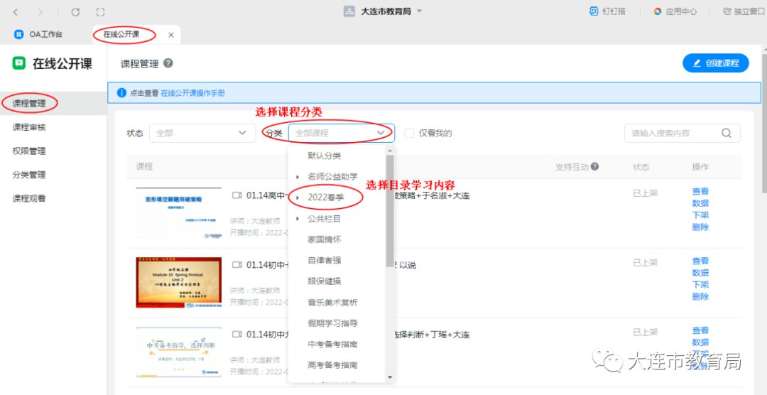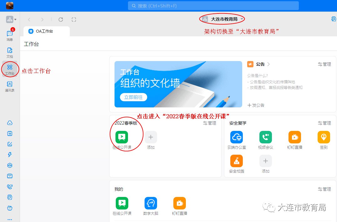 为更好地服务疫情防控特殊时期全市中小学生的线上学习,“大连教育数字课堂2022春季版”已全新上线,电脑端钉钉观看方式如下↓↓