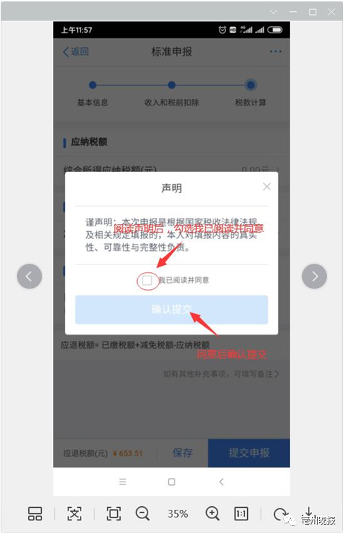 勾选我已阅读并同意后确认提交