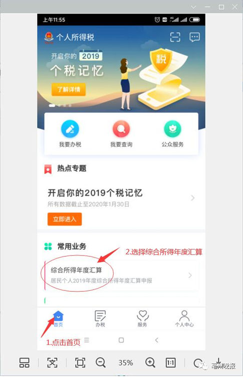 2、点击首页,选择综合所得年度汇算