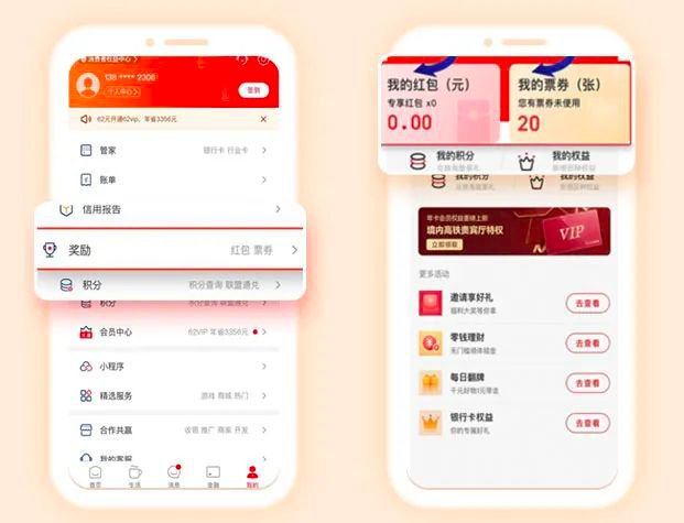 点击“我的”-“奖励”,在我的票券”中查看抵扣券,“我的红包”中查看现金券(红包)