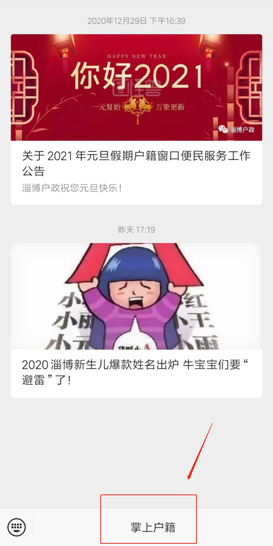 1. 关注“淄博户政”公众号(点击蓝色字体扫码关注淄博户政);