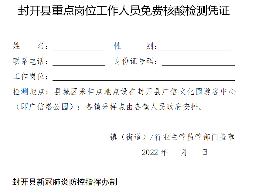 3.以上人员可凭镇(街道)或行业主管监管部门制发的凭证到本地指定的检测点进行核酸采样。