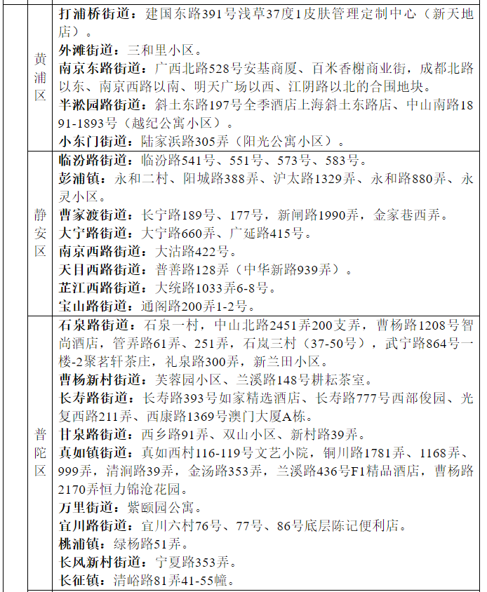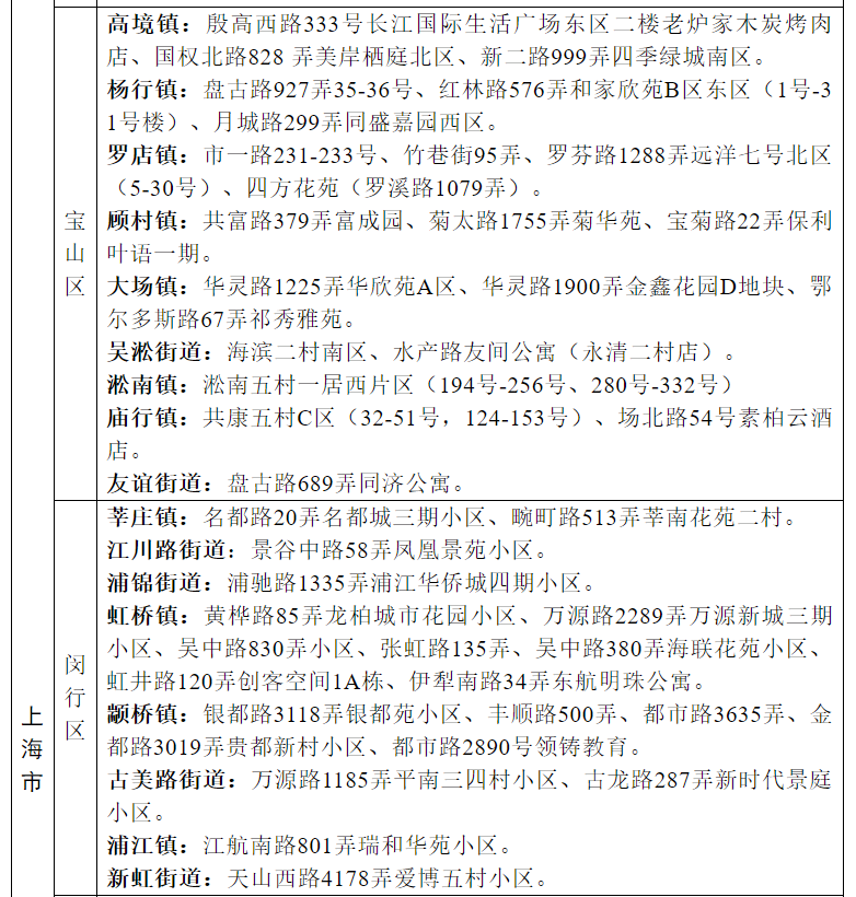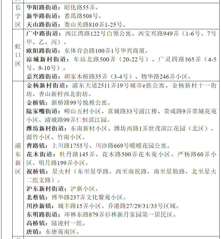 上海高风险地区一览: