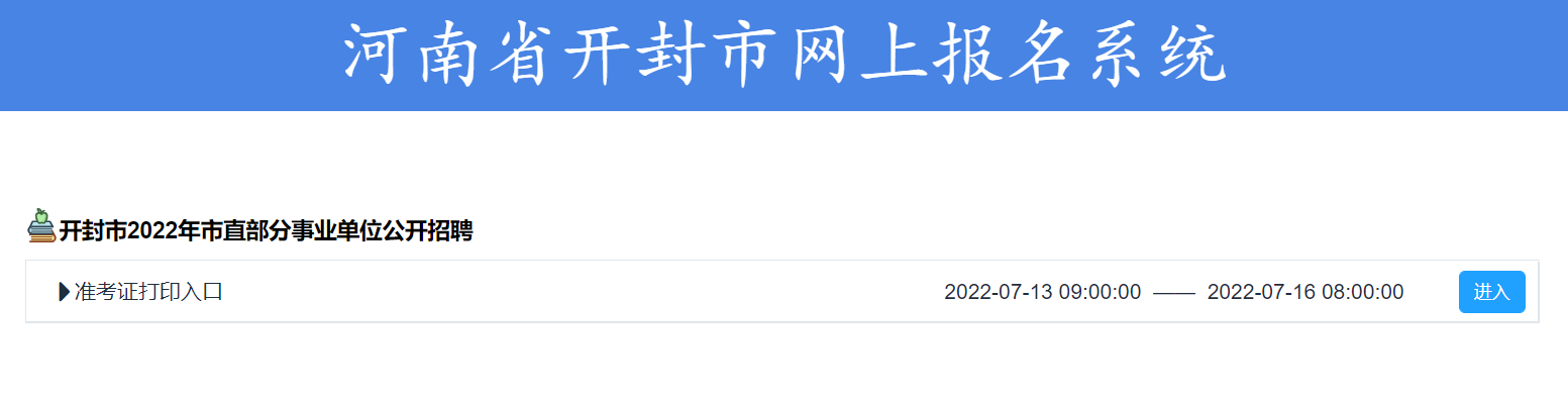 开封市2022年市直部分事业单位公开招聘打印准考证入口