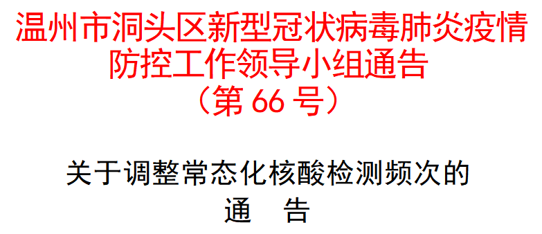 自9月5日零时起至10月底,洞头区常态化核酸检测频次已从5天调整为72小时,自9月7日零时起开始扫码查验。现将有关事项通告如下: