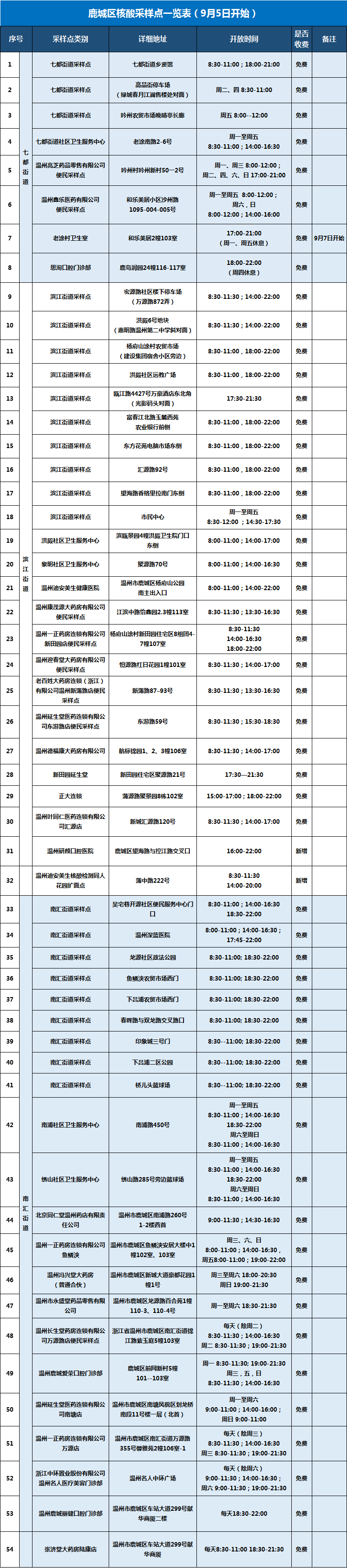 自9月5日零时起至10月底,鹿城区常态化核酸检测频次从5天调整为72小时,自9月7日零时起开始扫码查验。现将有关事项通告如下: