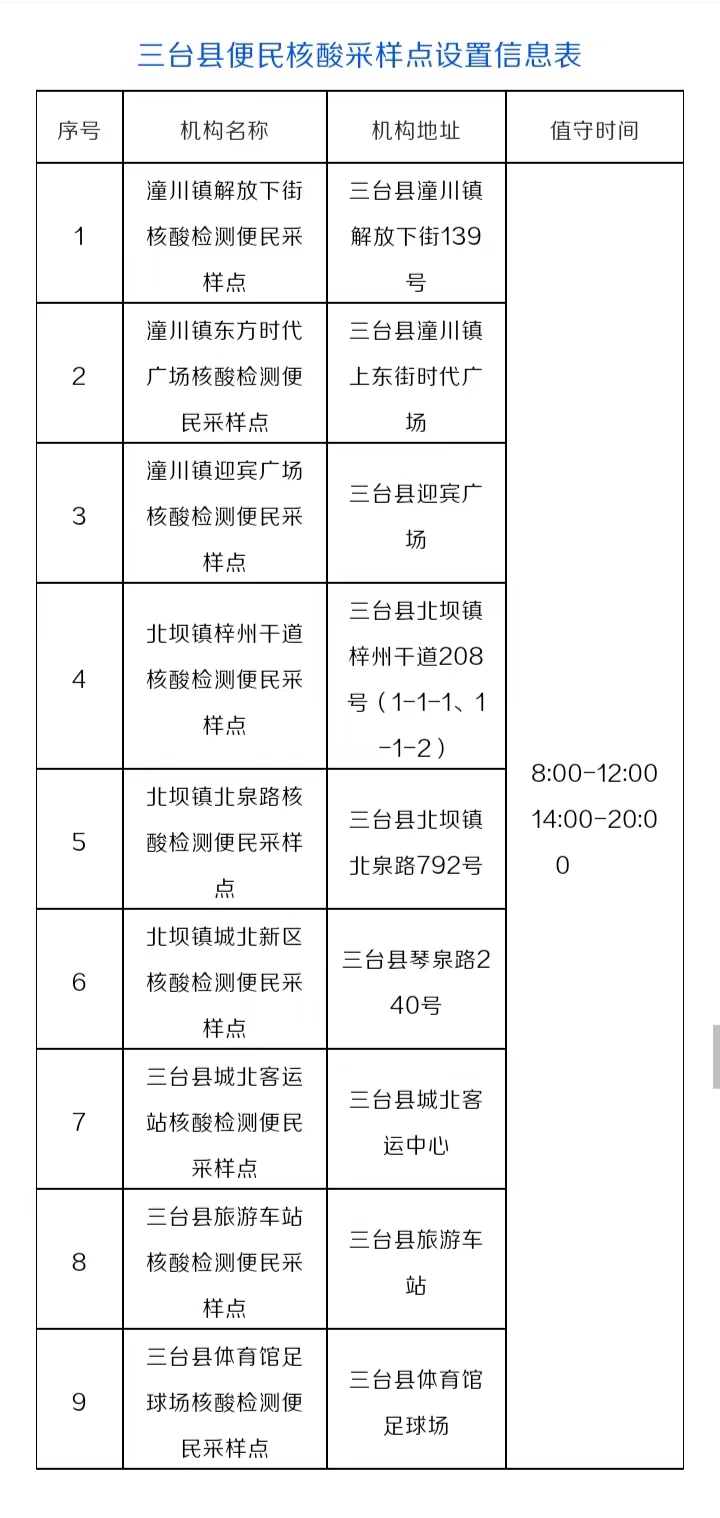 凡是居住在三台县的居民,包括但不限于本地常住人口、暂住人口、临时流动人口、外籍人口等,请严格按照三台县应对新冠肺炎疫情应急指挥部办公室的统一部署,就近到指定地点有序进行核酸检测,应检尽检、不漏一人。