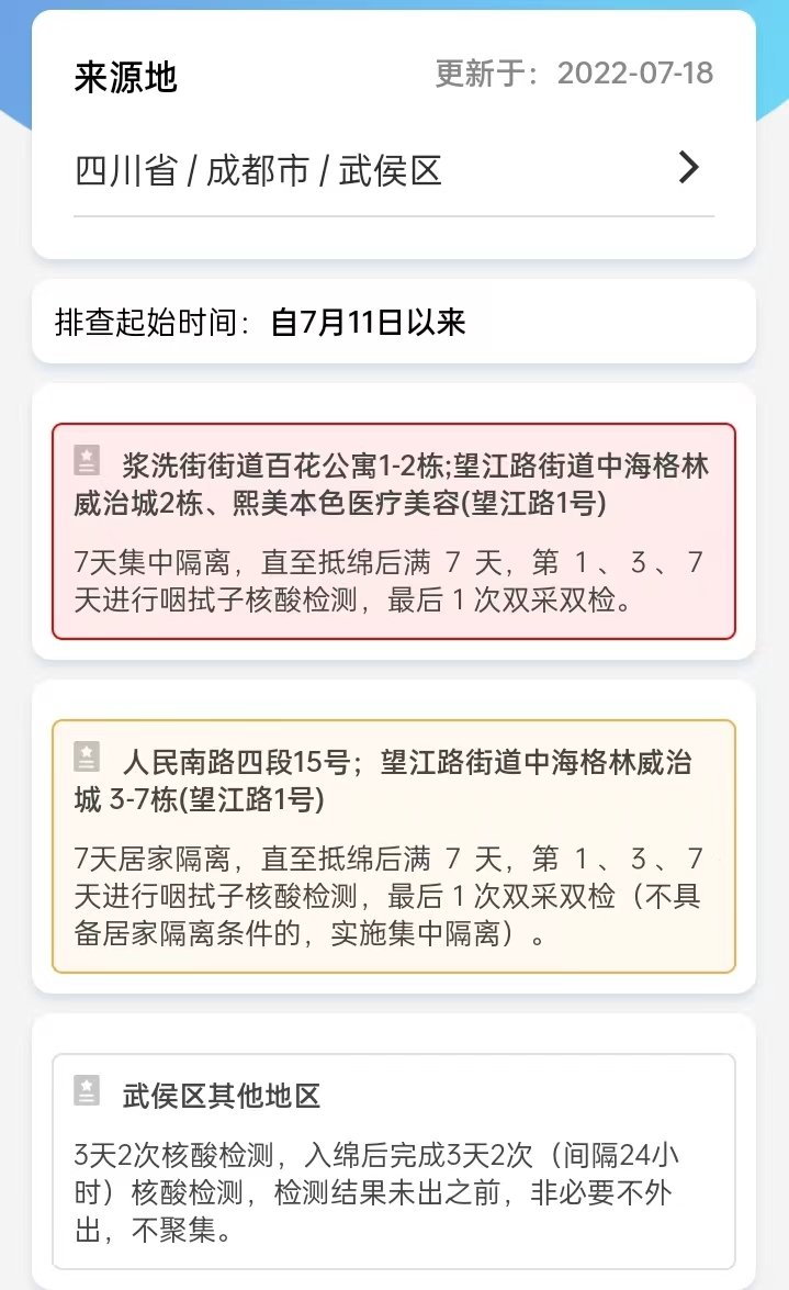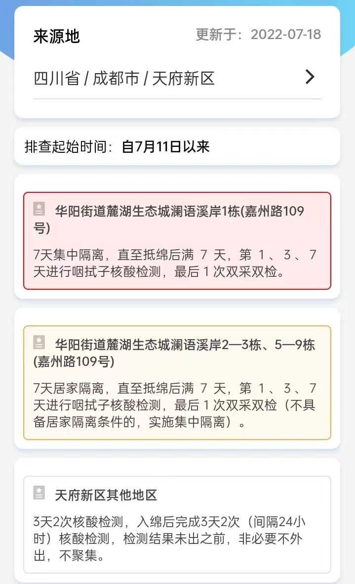 绵阳针对成都锦江区、天府新区、武侯区来返绵人员的防控措施如下: