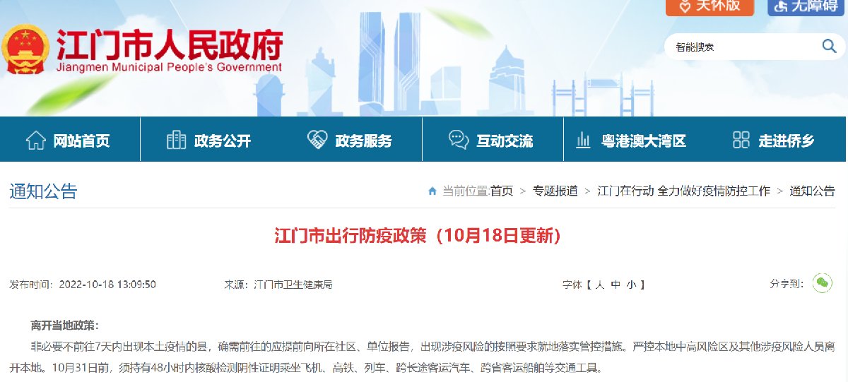 非必要不前往7天内出现本土疫情的县,确需前往的应提前向所在社区、单位报告,出现涉疫风险的按照要求就地落实管控措施。严控本地中高风险区及其他涉疫风险人员离开本地。10月31日前,须持有48小时内核酸检测阴性证明乘坐飞机、高铁、列车、跨长途客运汽车、跨省客运船舶等交通工具。