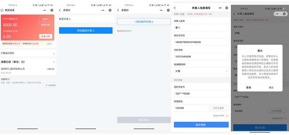 (2)1个额度主体人最多同时绑定8个额度共享人。额度主体人可随时删除额度共享人,解除绑定的亲情付关系。额度共享人亦可在惠民就医页面主动解除与额度主体人的绑定关系。