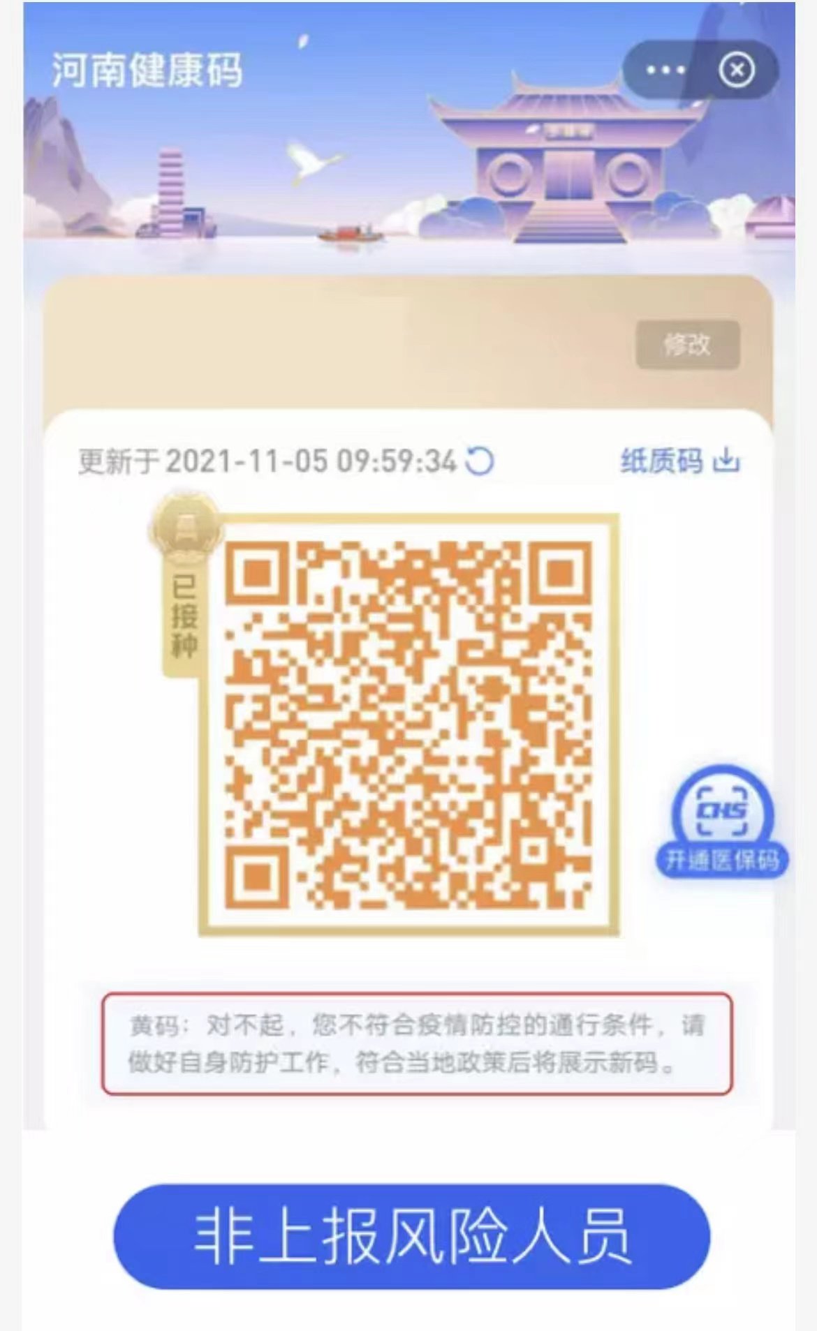 按照河南省新冠肺炎疫情防控指挥部办公室最新要求,自3月22日0时起,对外省返豫入豫人员,在查验48小时核酸检测阴性证明措施基础上,实施省外返豫落地即赋黄码,三天两次核酸检测等健康管理措施。