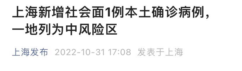 2022年10月30日,上海市新冠肺炎疫情防控工作领导小组办公室发布消息: