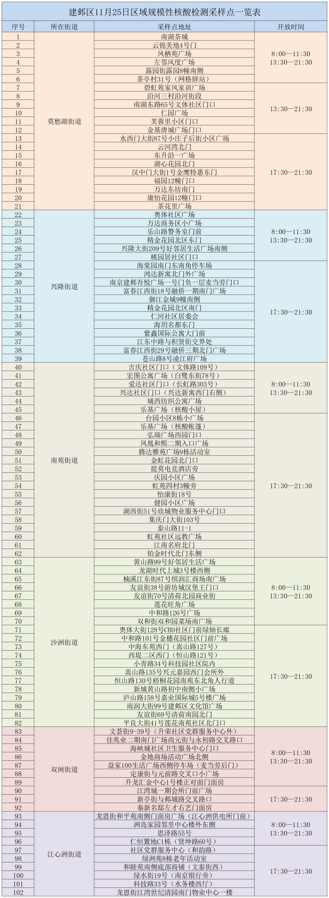 根据当前疫情防控工作需要,消除社会隐匿传播风险,织密筑牢“早发现、快处置”的疫情防线,经建邺区新冠肺炎疫情联防联控工作指挥部研究,2022年11月25日(周五)在全区开展区域规模性核酸检测,现将有关事宜通告如下:
