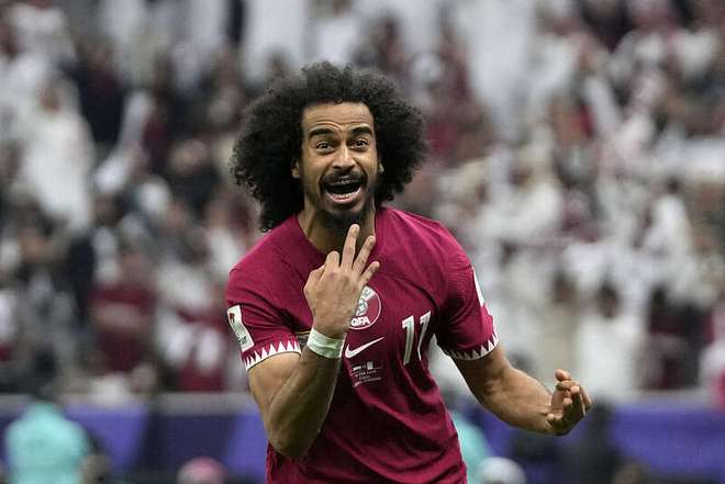 亚洲杯决赛,卡塔尔队前锋阿菲夫完成单场比赛点球“帽子戏法” 视觉中国供图