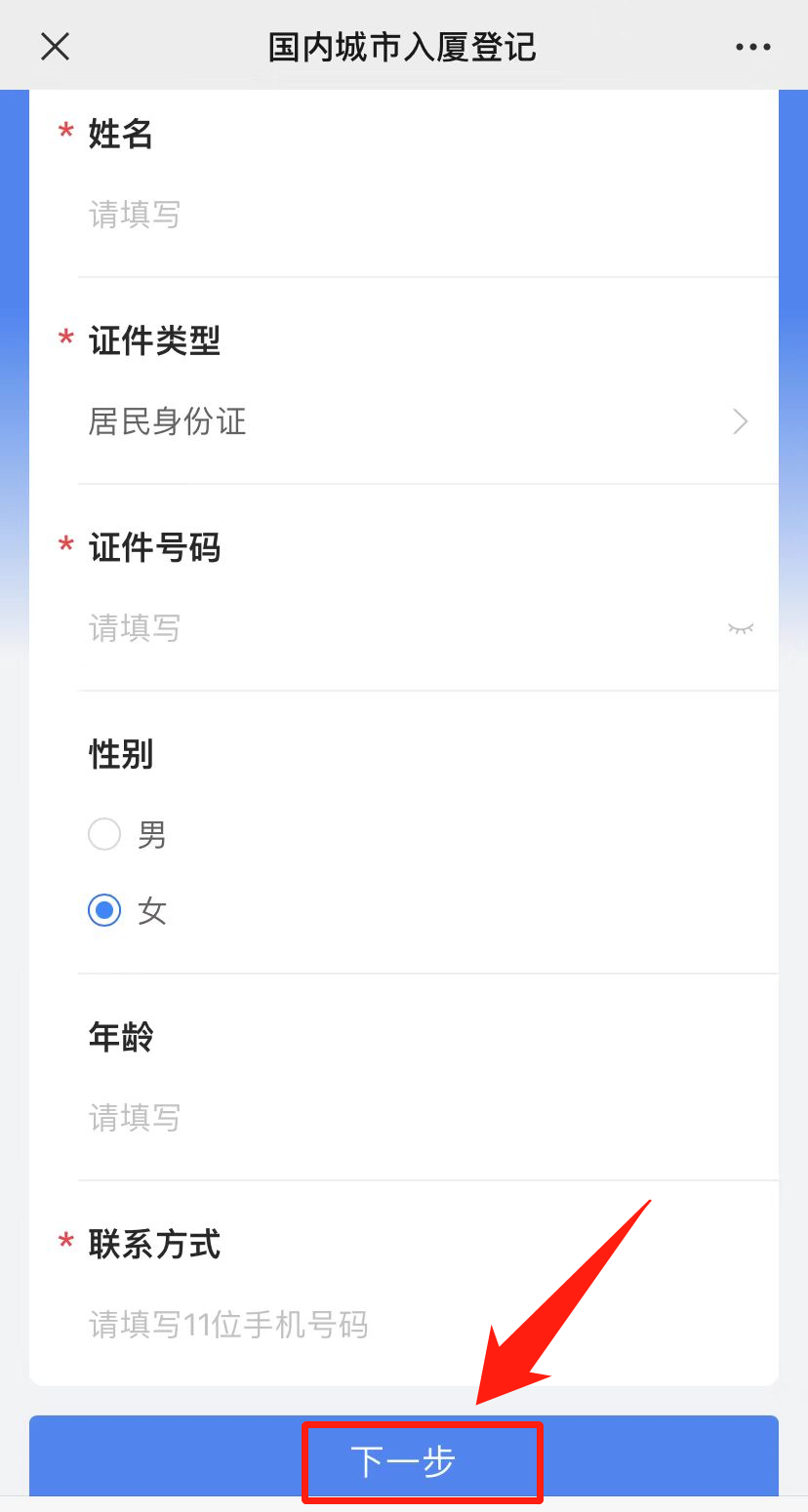2、阅读登记须知,点击“国内城市入厦登记”;