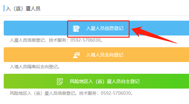 1、进入i厦门信息登记入口,点击“入厦人员信息登记”