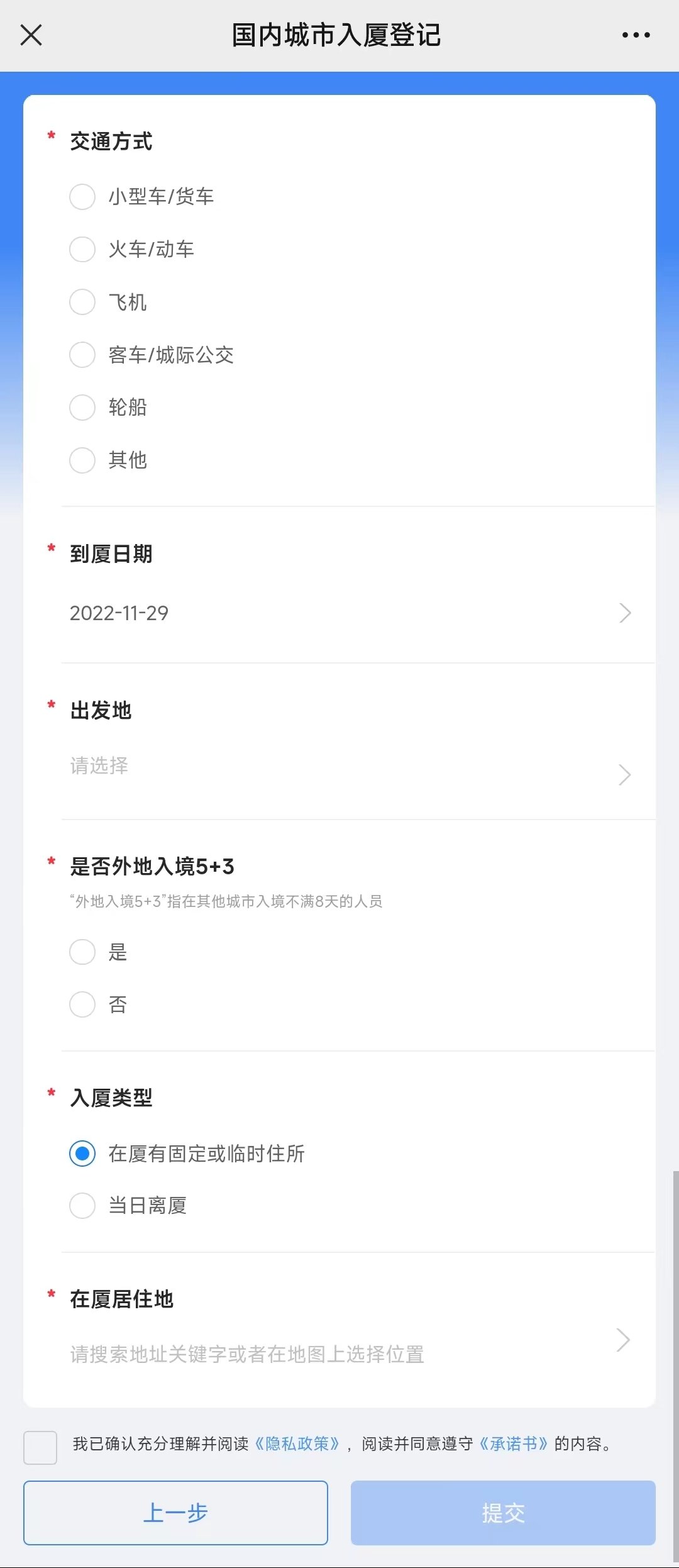 特别注意:根据厦门市疫情防控要求,所有(入)返厦人员,须提前通过“i厦门入厦人员信息登记”登记信息,并主动向所在单位、社区或入住酒店宾馆报备,配合落实健康管理措施。未提前报备的,须在抵厦后6小时内进行补录报备。