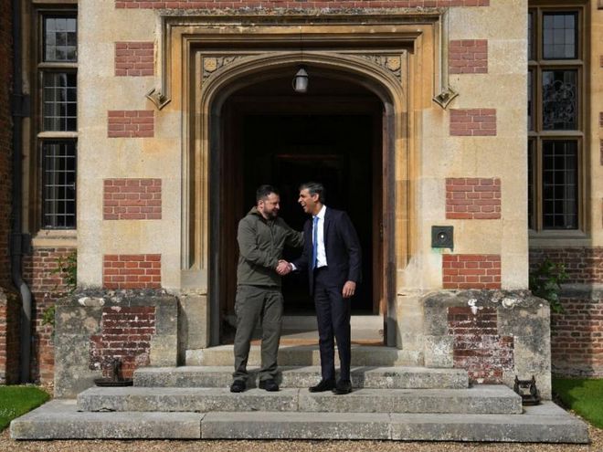 英国首相苏纳克在契克斯庄园,与乌克兰总统泽连斯基会面 图源:法新社