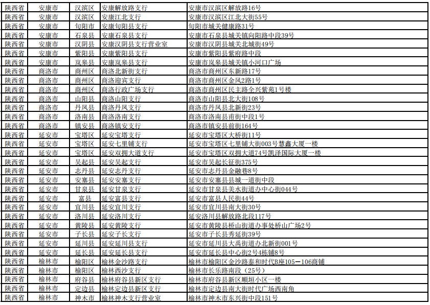 2、华夏银行(包括西安、西咸新区、宝鸡、延安、铜川、宝鸡、咸阳)