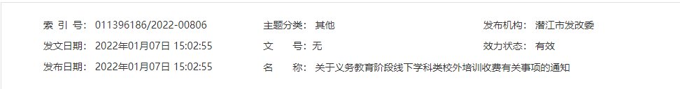 潜江市线下学科类校外培训机构收费标准