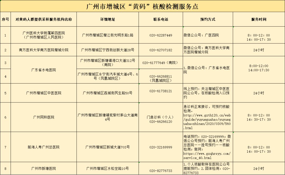 增城14个“愿检尽检”(绿码)临时核酸集中检测点