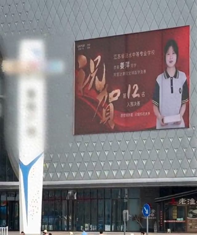 6月15日,据媒体报道,江苏淮安涟水县一广场户外大屏轮播姜萍获奖喜报,不少网友专程到现场拍照打卡。