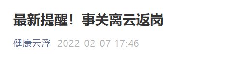 请市民出行前了解目的地有关防控政策要求,提前做好准备。非必要不离云、不出省,严格限制前往中、高风险地区及所在县(市、区);非必要不前往中高风险地区所在地市的其他县(市、区);非必要不前往陆地边境口岸城市(与香港、澳门有口岸相连的除外),避免非必要的跨境出行。确需离云的,自2月6日24时起,须持有48小时内核酸检测阴性证明。