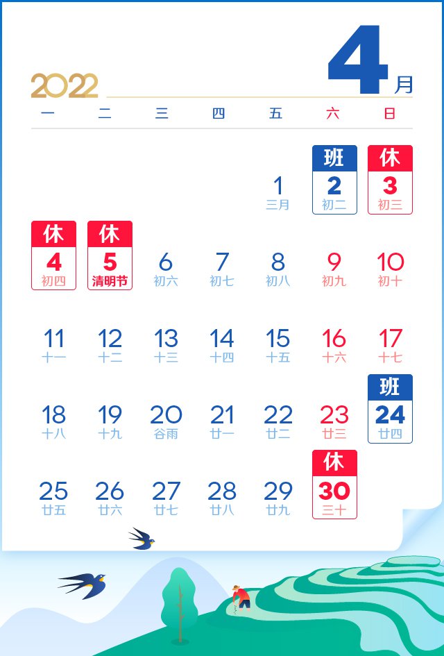 根据国务院发布的放假安排,2022年清明节4月3日至5日放假调休,共3天。4月2日(星期六)上班。