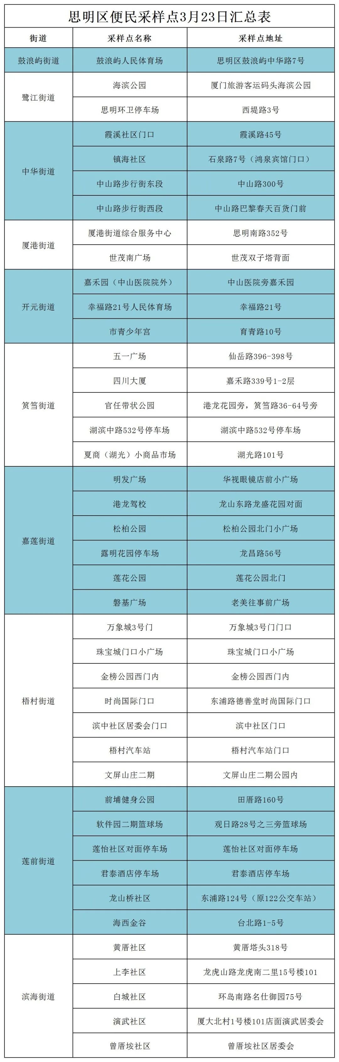 思明区免费核酸检测点(持续更新)